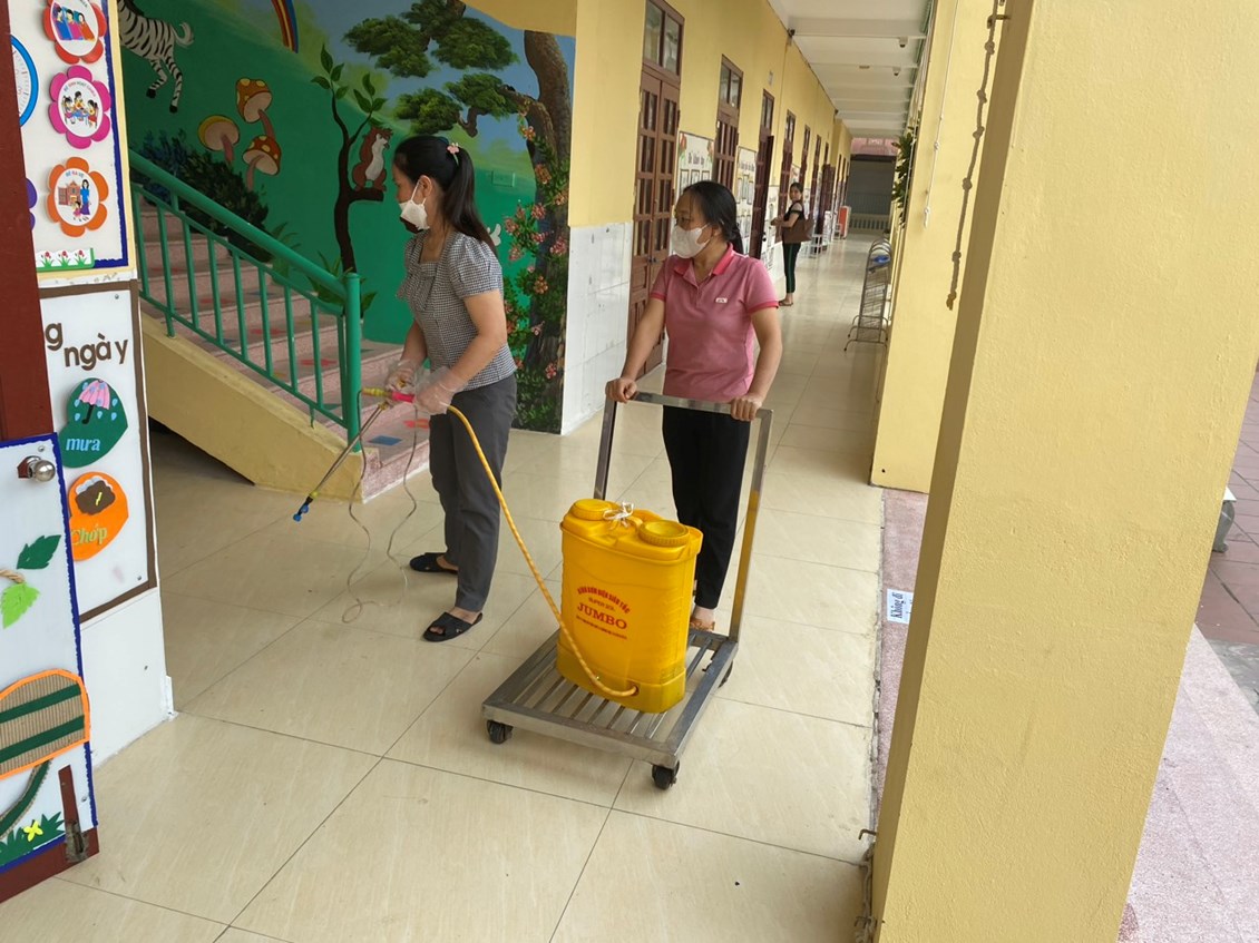 Dưới đây là một số hình ảnh trường mầm non Tam Đa vệ sinh trường lớp, phun khử khuẩn, phun thuốc muỗi để phòng tránh muỗi và các dịch bệnh mùa thu.