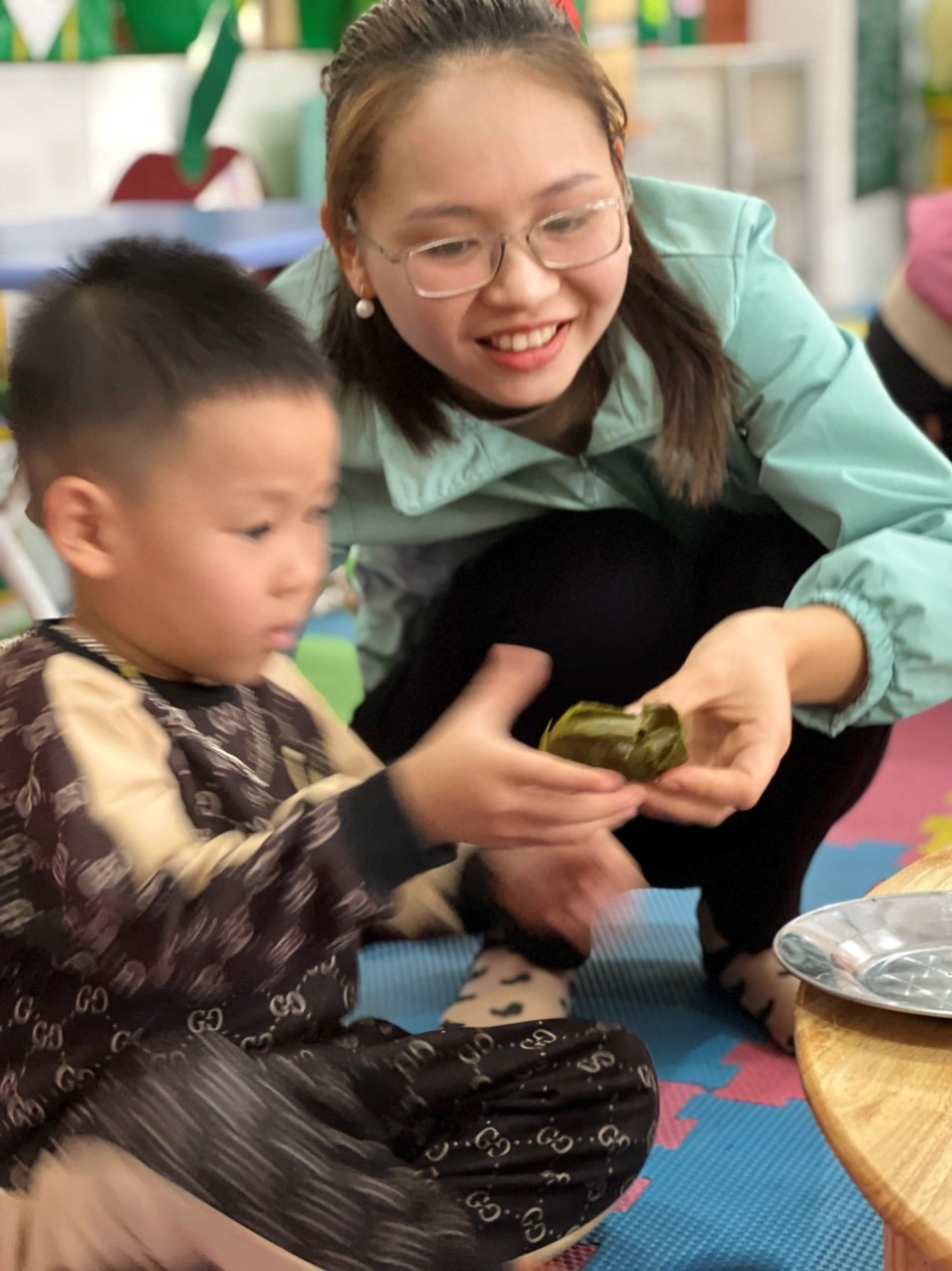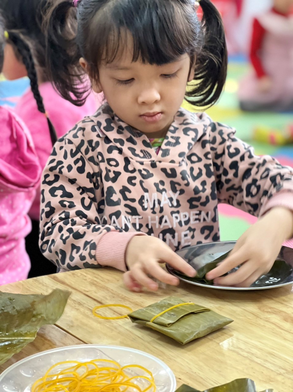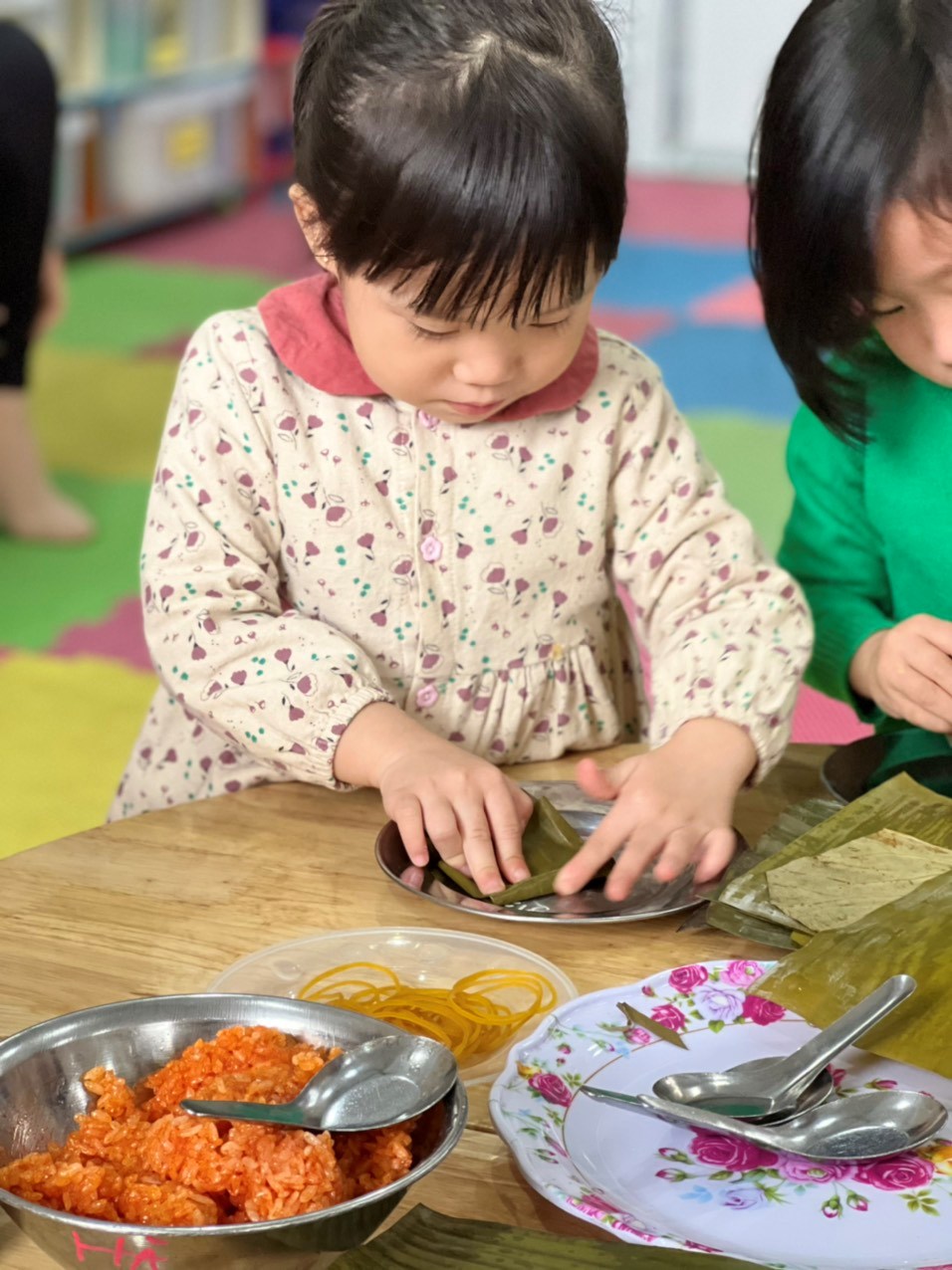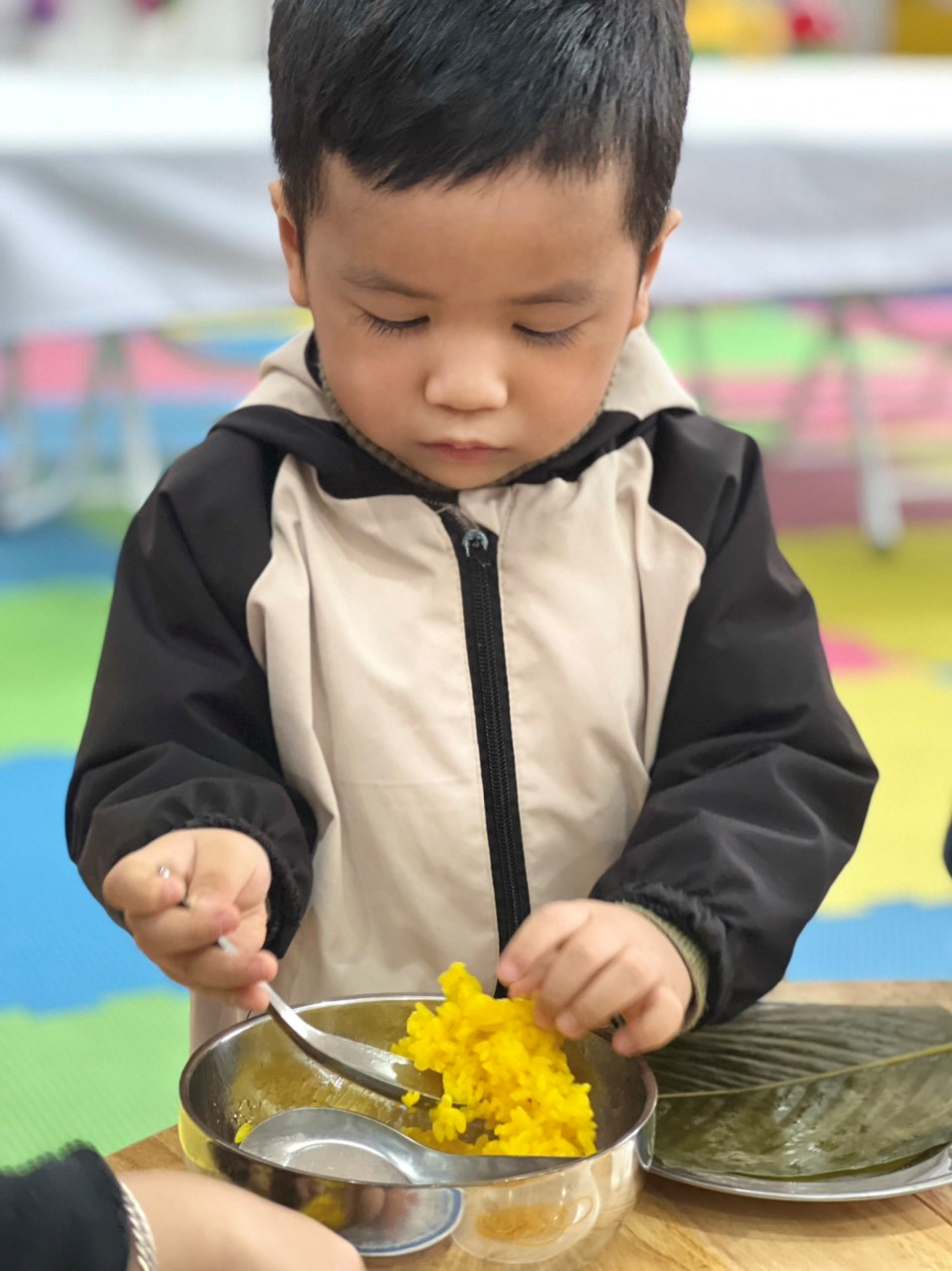 Hoạt động 1: Dạy trẻ gói xôi bằng lá