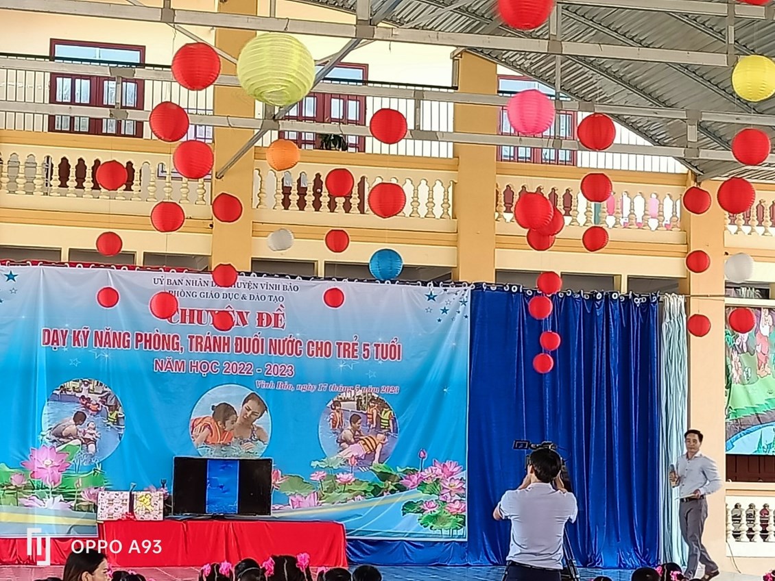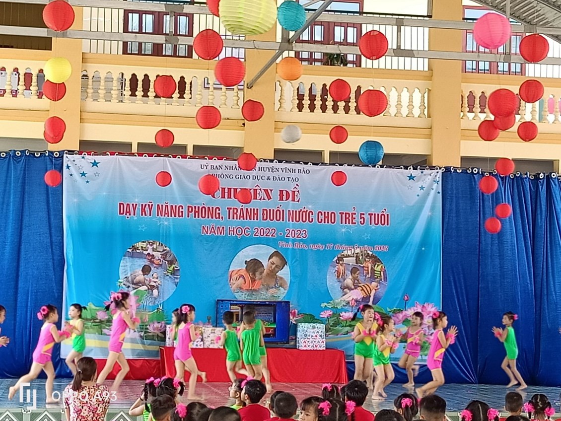 Thực hiện Công văn số 461/GDĐT - MN ngày 09/09/2022 của Phòng giáo dục và đào tạo về việc hướng dẫn thực hiện nhiệm vụ giáo dục mầm non năm học 2022-2023. Phòng giáo dục và đào tạo huyện Vĩnh Bảo tổ chức chuyên đề giáo dục mầm non cấp huyện năm học 2022-2023 với nội dung "Phòng tránh đuối nước cho trẻ mẫu giáo 5 tuổi".
