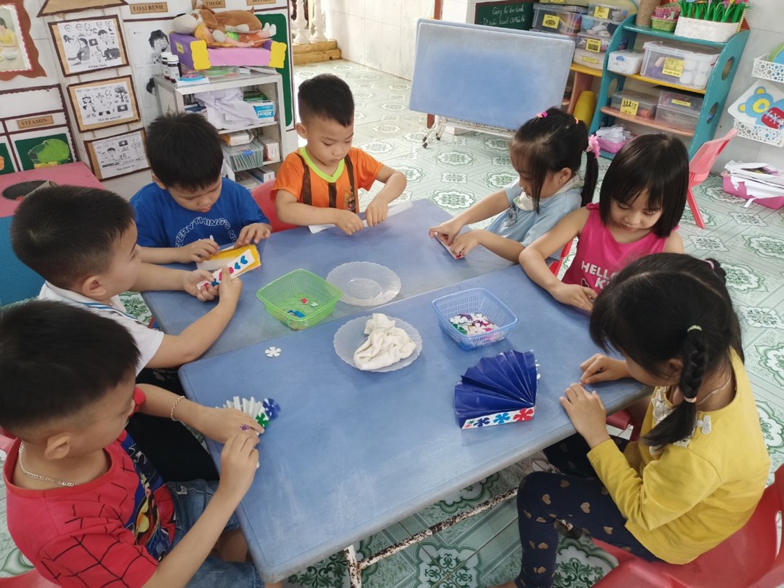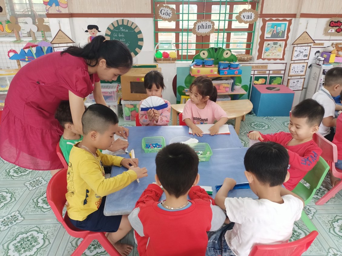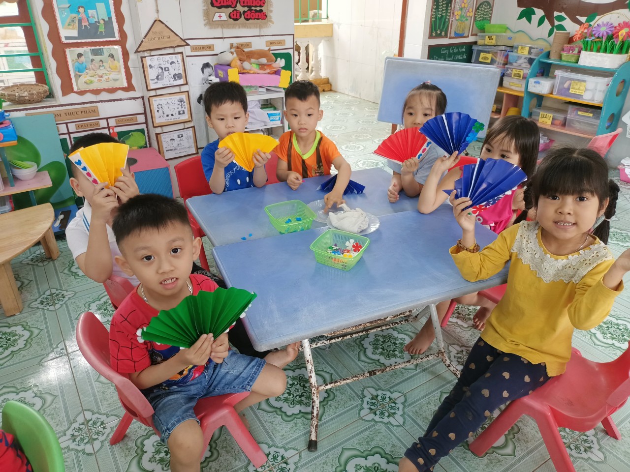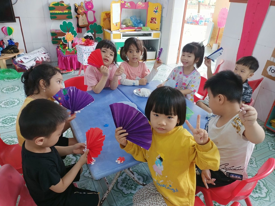 Dưới bàn tay khéo léo của các bé, những chiếc quạt trở nên vô cùng xinh đẹp và sáng tạo!